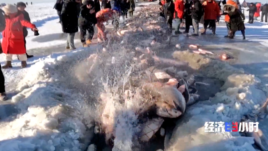 數(shù)九寒天,查干湖上一年一度的冬捕拉開序幕。馬拉絞盤,冰下走網(wǎng),胖頭魚、鯉魚、大白魚躍出水面,瞬間就被低溫鎖住鮮美。