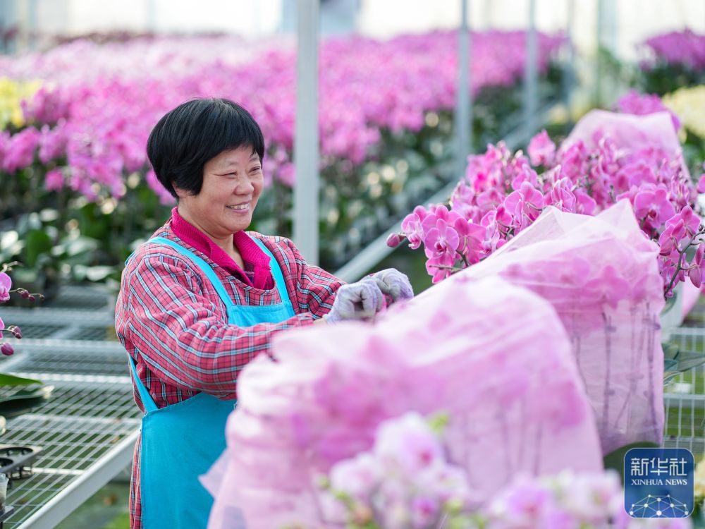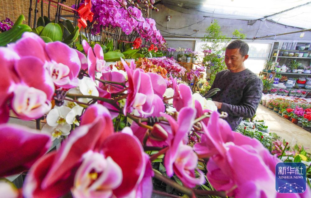 ↑1月22日,河北省遵化市遵化鎮(zhèn)張家坎村農(nóng)民在暖棚管護花卉,準備供應(yīng)節(jié)日市場。新華社發(fā)(劉滿倉攝)