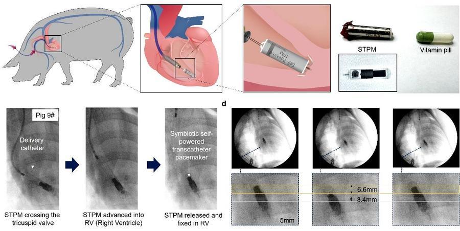 歷經(jīng)近七年聯(lián)合攻關(guān),中國科學院大學(簡稱“國科大”)、清華大學、清華大學北京清華長庚醫(yī)院、北京大學、北京大學第三醫(yī)院、中國醫(yī)學科學院阜外醫(yī)院等多家單位組成的研究團隊,在該領(lǐng)域取得重要進展——成功研發(fā)出膠囊尺寸的微型共生型自供電無導(dǎo)線心臟起搏器。近日,相關(guān)研究成果刊載于權(quán)威期刊《自然-生物醫(yī)學工程》上。