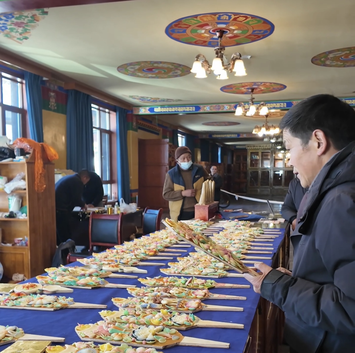 “哪種圖案寓意更好?”“‘八吉祥徽’和‘和睦四瑞’能搭配嗎?”問題接連不斷,倫珠忙得幾乎腳不沾地。他介紹,合作社于2025年11月成立,匯集了30多位手藝精湛的老師傅。為應對新年需求,大家提前一個月便開始制作,沒想到開售僅3天,1500多對酥油花便已售出,備貨幾乎告罄。