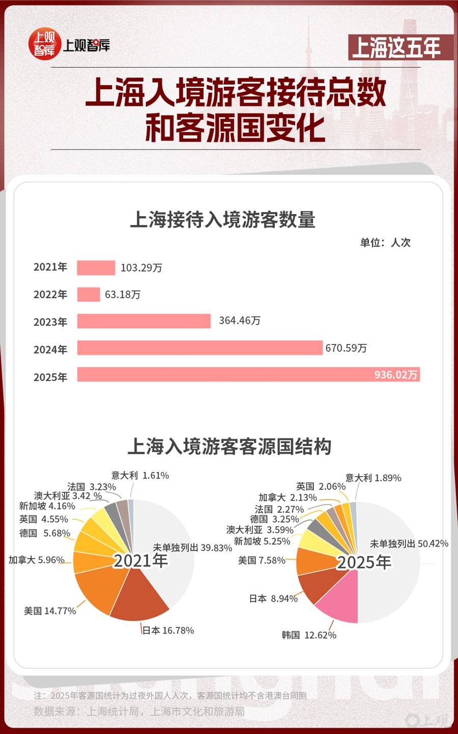 開(kāi)放的上海,在全球的魅力日益提升。乘著免簽政策東風(fēng),上海在入境游賽道走出強(qiáng)勁上升曲線,“中國(guó)入境游第一站”吸引力持續(xù)攀升。去年全年,上海接待入境游客總量936.02萬(wàn)人次,創(chuàng)下歷史新高,成為全球游客感知中國(guó)文化、體驗(yàn)都市魅力的首選目的地。