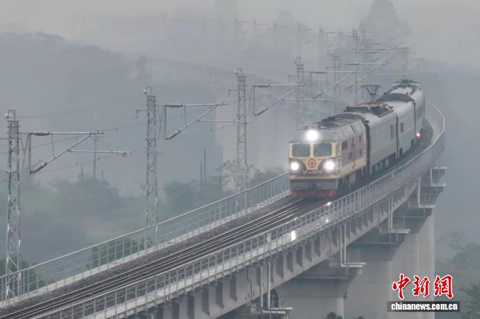 圖為2025年11月,檢測列車正在通過隆瀘敘鐵路高架橋梁段(資料圖)。蜀道鐵投集團供圖