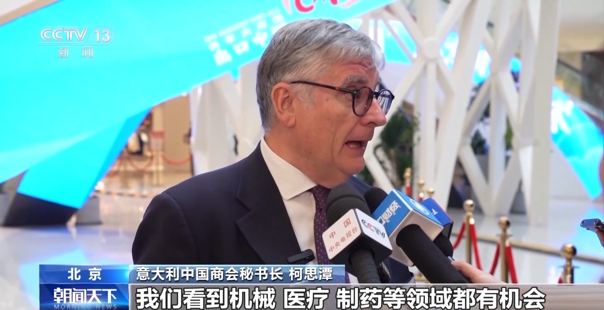 意大利中國商會秘書長 柯思潭:我們看到機械、醫(yī)療、制藥等領(lǐng)域都有機會,還有意大利傳統(tǒng)優(yōu)勢產(chǎn)品,比如時尚和設(shè)計等。未來五年中國將提振消費,這對我們來說是額外的機會。