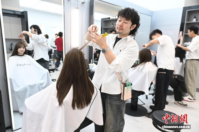 理發(fā)師為年輕顧客剪發(fā)。 中新網記者 劉文華 攝