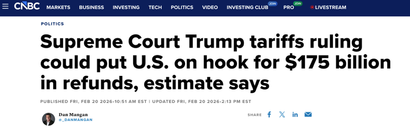 更值得注意的是,從近兩天動作看,白宮的核心優(yōu)先級并不是“盡快把錢退回去”,而是“盡快把關(guān)稅工具續(xù)上”。白宮一方面通過行政令,終止依據(jù)IEEPA加征的額外從價稅,另一方面又迅速依《1974年貿(mào)易法》第一百二十二條祭出為期150天的臨時全球15%關(guān)稅,同時加大利用301條甚至232條等傳統(tǒng)工具,繼續(xù)搭建新的關(guān)稅墻。這套動作釋放的信號十分明確:關(guān)稅杠桿要繼續(xù)用,至于已經(jīng)收來的稅款怎么退、退多少,姑且交給訴訟和程序去磨。換句話說,即便法院逼著政府退錢,白宮也在試圖通過新一輪、基于其他法律授權(quán)的關(guān)稅,把現(xiàn)金流盡可能補回來。