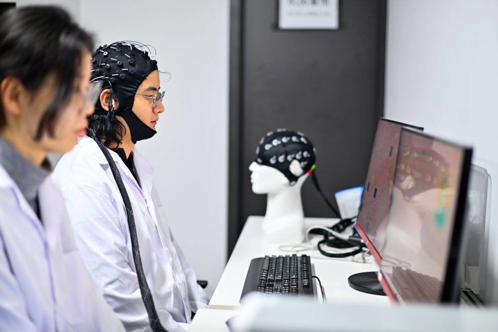 2026年2月27日,在位于天津?yàn)I海高新區(qū)的中電云腦(天津)科技有限公司,工作人員進(jìn)行腦機(jī)接口技術(shù)測試。新華社記者 趙子碩 攝