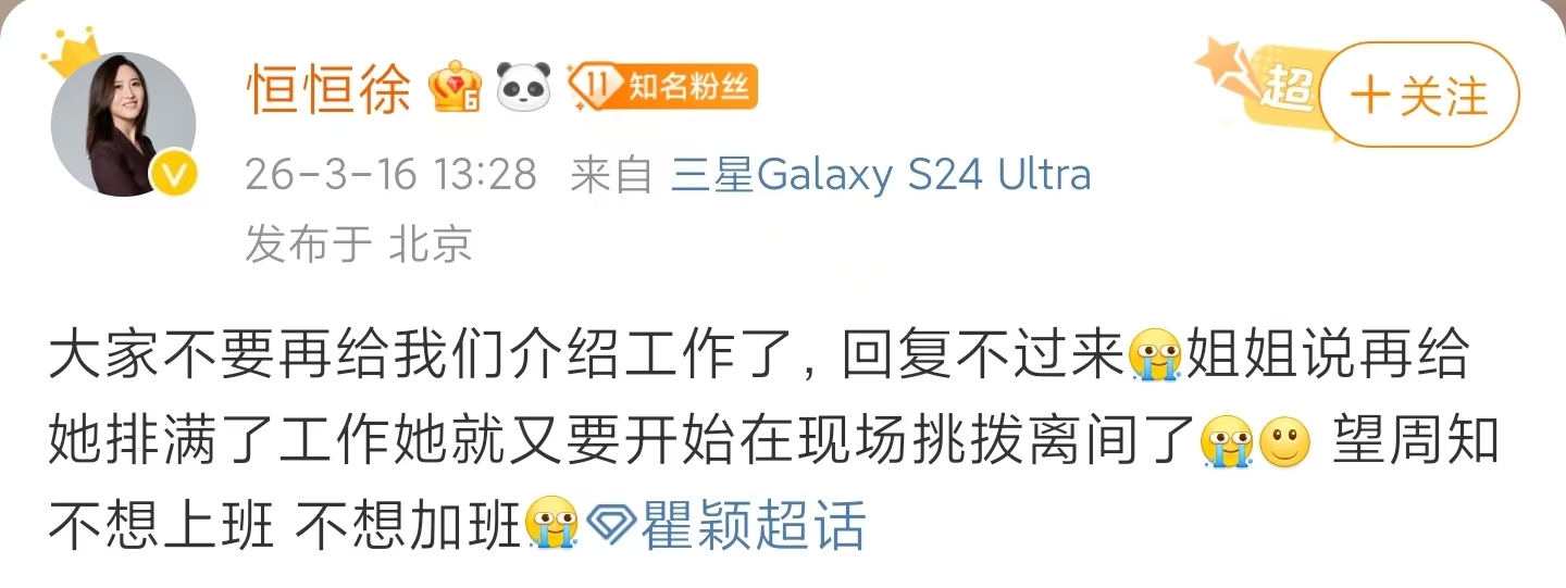 翻紅后,她不僅婉拒了大量媒體采訪,也沒有第一時間出現(xiàn)在直播間“321上鏈接”。相反,她的經(jīng)紀人更在社交媒體公開喊話,“大家不要再給我們介紹工作了……望周知,不想上班,不想加班?!?/p>