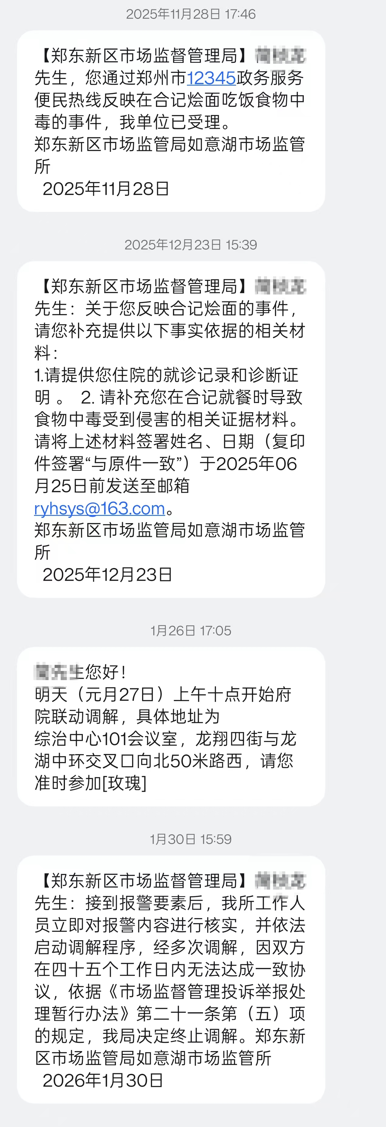 春節(jié)期間,鄭州市鄭東新區(qū)如意湖市場監(jiān)督管理所相關(guān)工作人員電話通知簡先生稱,已對涉事門店出具了行政處罰通知書,罰款4萬元。鄭州合記燴面眾意路店對此并不認(rèn)可,申請了聽證會流程。簡先生稱,他已申請查閱卷宗,但目前尚未得到回復(fù)。
