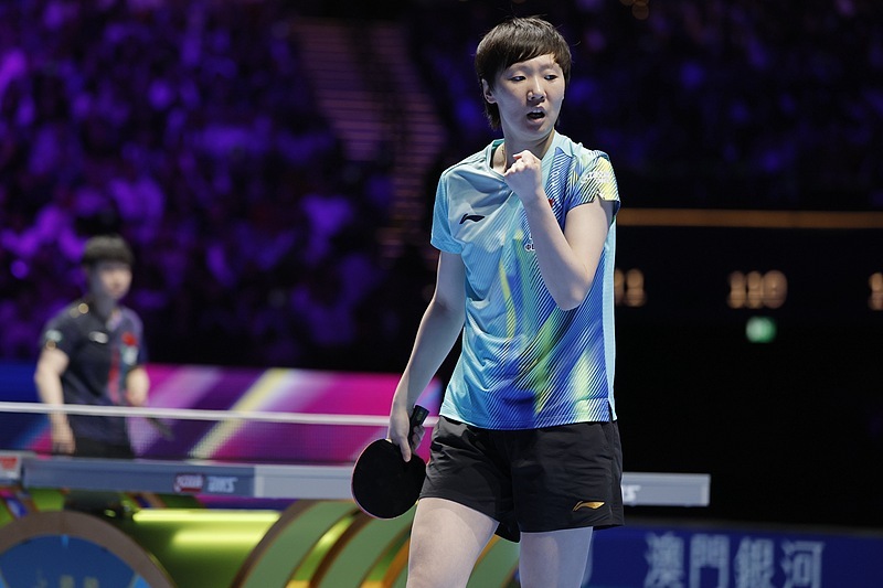 北京時(shí)間4月5日晚,國(guó)際乒聯(lián)單打世界杯女單決賽,孫穎莎4-1戰(zhàn)勝王曼昱,衛(wèi)冕冠軍,實(shí)現(xiàn)該項(xiàng)賽事“三連冠”。(總臺(tái)記者 劉冰清)
