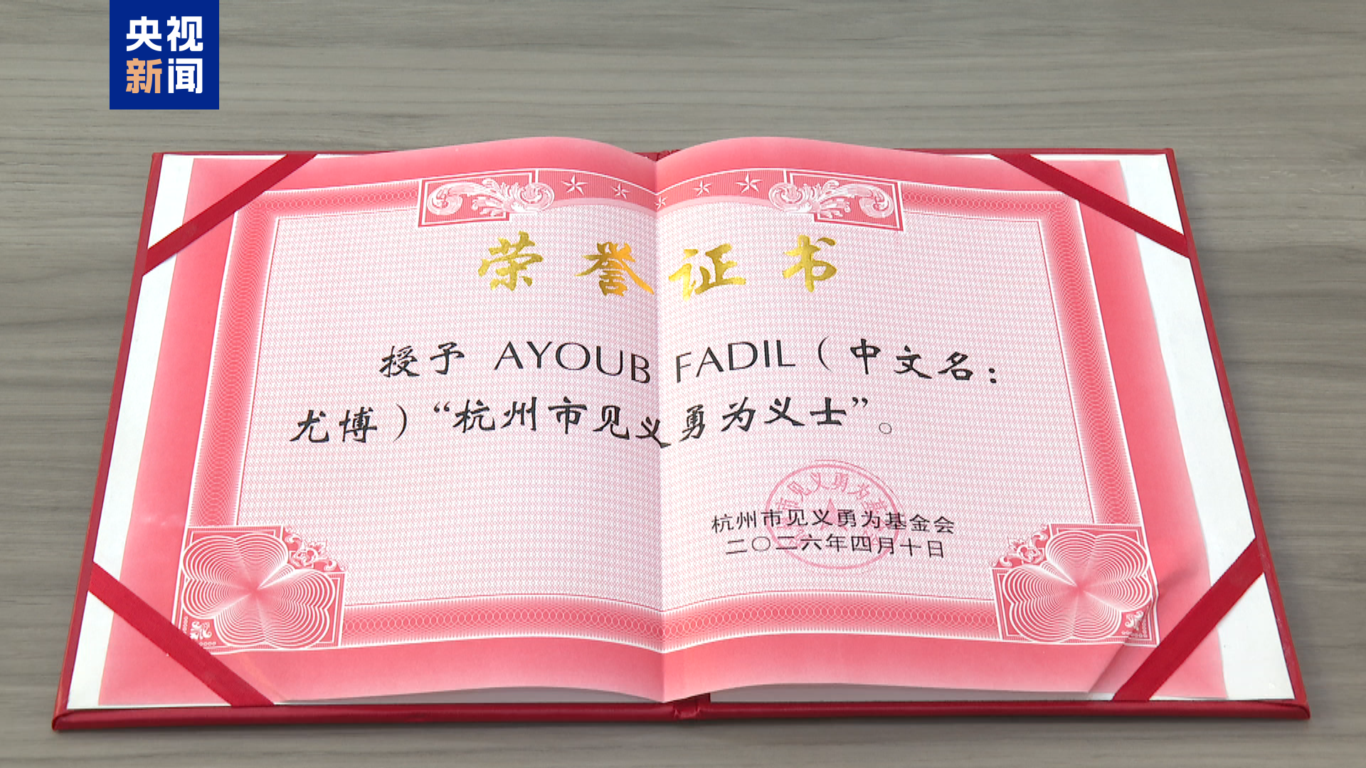 杭州市文明辦授予尤博“杭州好人”稱號(hào)。杭州市見義勇為基金會(huì)為其頒發(fā)見義勇為獎(jiǎng)勵(lì)金5000元以及見義勇為證書,希望通過即時(shí)即獎(jiǎng)的方式,讓勇者有榮,同時(shí)也傳遞“善良無國(guó)界”的精神。據(jù)悉,這是第一位獲評(píng)“杭州好人”的外籍友人。