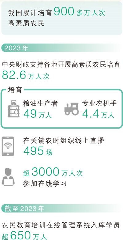 不久前,農(nóng)業(yè)農(nóng)村部辦公廳印發(fā)《關(guān)于做好2024年高素質(zhì)農(nóng)民培育工作的通知》,要求緊緊圍繞農(nóng)業(yè)農(nóng)村高質(zhì)量發(fā)展人才需求,堅持需求導(dǎo)向、產(chǎn)業(yè)主線、分層實施、全程培育,聚焦提升技術(shù)技能水平、提升產(chǎn)業(yè)發(fā)展能力、提升綜合素質(zhì)素養(yǎng),培育糧食安全守護(hù)者、產(chǎn)業(yè)發(fā)展帶頭人和鄉(xiāng)村振興主力軍,為推進(jìn)鄉(xiāng)村全面振興、加快建設(shè)農(nóng)業(yè)強(qiáng)國提供堅實人才保障。