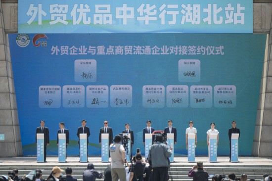 外貿(mào)優(yōu)品中華行湖北站暨“樂(lè)購(gòu)湖北”消費(fèi)季活動(dòng)26日在武漢市漢口北國(guó)際貿(mào)易城啟動(dòng)?;顒?dòng)旨在打造出口產(chǎn)品拓內(nèi)銷的標(biāo)志性平臺(tái),通過(guò)系列專題對(duì)接活動(dòng),助力外貿(mào)企業(yè)開拓國(guó)內(nèi)市場(chǎng),促進(jìn)消費(fèi)升級(jí)。啟動(dòng)儀式現(xiàn)場(chǎng),京東集團(tuán)、淘天集團(tuán)、武商集團(tuán)、武漢國(guó)貿(mào)集團(tuán)等現(xiàn)場(chǎng)與益海嘉里食品營(yíng)銷有限公司、東莞徐記食品有限公司等外貿(mào)出口企業(yè)簽訂出口轉(zhuǎn)內(nèi)銷采購(gòu)協(xié)議、合作計(jì)劃,簽約金額145億元,為湖北外貿(mào)企業(yè)拓展內(nèi)需市場(chǎng)注入強(qiáng)勁動(dòng)力。