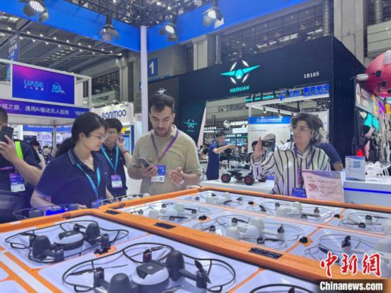 國外采購商咨詢新型無人機。 記者 索有為 攝