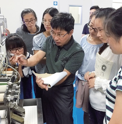 中國科學院院士宋微波(中)在指導學生開展科研。
