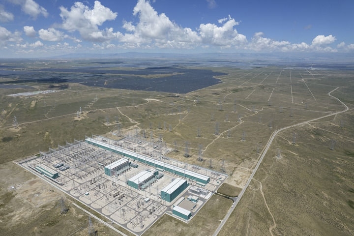 這是2025年7月25日在青海省海南藏族自治州共和縣拍攝的±800千伏特高壓青南換流站(無人機(jī)照片)。新華社記者 孫瑞博 攝