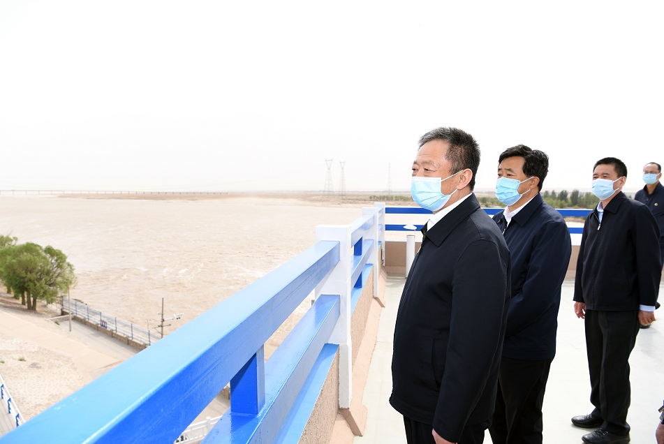 孫紹騁考察三盛公國家水利樞紐工程運行情況。內(nèi)蒙古日報社融媒體記者 袁永紅攝