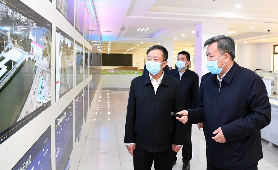 孫紹騁在河套灌區(qū)水量調(diào)度信息化中心調(diào)研。內(nèi)蒙古日報社融媒體記者 袁永紅攝