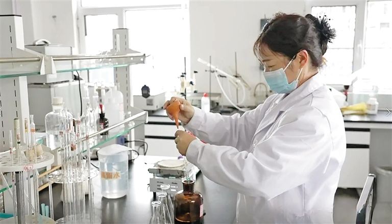 內蒙古潔泰諾生物科技有限公司質檢中心工作人員進行取樣分析。楊麗芳 攝