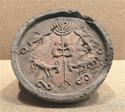 遺址展示館內(nèi),戰(zhàn)國時(shí)期樹木鳥獸紋瓦當(dāng)、漢代“富樂未央,子孫宜昌”銘文磚、北魏角抵瓦當(dāng)?shù)冉ㄖ?gòu)件,訴說著古城的千年繁華。樹木鳥獸紋瓦當(dāng)正中有一株挺拔的樹,弧形樹冠向上舒展,枝葉兩側(cè)對稱雕刻振翅飛鳥,樹干上的兩只猴子呈攀緣姿態(tài)相對而立,樹根部對飾兩只山羊,造型質(zhì)樸。內(nèi)蒙古師范大學(xué)北疆文化研究中心主任陳永志介紹:“樹冠飛鳥、猴子攀樹題材源自中原地區(qū)靈魂升天、王侯將相等文化元素,而對羊紋又具有草原游牧民族風(fēng)格。這件瓦當(dāng)生動(dòng)體現(xiàn)了中原文化與北方草原文化的交融。”