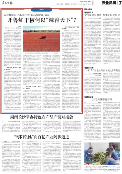 2025年9月9日,《農(nóng)民日?qǐng)?bào)》第7版刊發(fā)題為《以科技賦能、以標(biāo)準(zhǔn)引領(lǐng)、以品牌增效,請(qǐng)看——開(kāi)魯紅干椒何以“辣香天下”?》的文章,報(bào)道了內(nèi)蒙古開(kāi)魯縣用“標(biāo)準(zhǔn)”這把金鑰匙,成功開(kāi)啟了紅干椒產(chǎn)業(yè)品牌化、國(guó)際化的大門。未來(lái),隨著對(duì)不同品種標(biāo)準(zhǔn)化體系的持續(xù)創(chuàng)建和完善,“開(kāi)魯紅干椒”這一區(qū)域公用品牌必將在更廣闊的舞臺(tái)上綻放出更加璀璨的光芒,真正實(shí)現(xiàn)“紅映開(kāi)魯,辣香天下”的愿景。