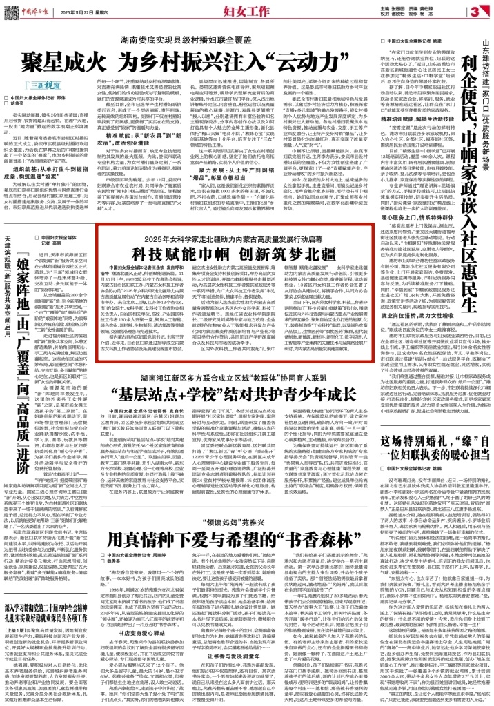 2025年11月22日《中國婦女報》第3版刊發(fā)了《2025年女科學家走北疆助力內(nèi)蒙古高質(zhì)量發(fā)展行動啟幕 科技賦能巾幗 創(chuàng)新筑夢北疆》的文章,報道了“2025年女科學家走北疆助力內(nèi)蒙古高質(zhì)量發(fā)展行動”在內(nèi)蒙古自治區(qū)呼和浩特市舉辦,來自13個?。▍^(qū)、市)的女院士、女科學家等130余人齊聚一堂,交流前沿理念與先進技術。