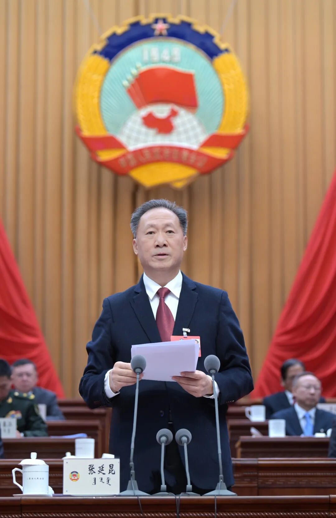 2月7日上午,自治區(qū)政協(xié)主席張延昆在自治區(qū)政協(xié)十三屆四次會(huì)議閉幕大會(huì)上講話。草原云·內(nèi)蒙古新聞網(wǎng)記者 馬建兵 攝