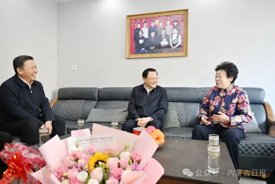 2月10日,自治區(qū)黨委書記、人大常委會主任王偉中向老黨員李玉蘭送上新春祝福。草原云·內(nèi)蒙古新聞網(wǎng)記者 馬建兵 攝