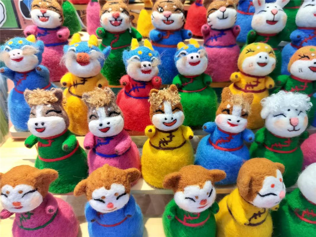 在呼和浩特市回民區(qū)寬巷子的一家非遺手作店內(nèi),來(lái)自青島的游客王藝女士,被展臺(tái)上憨態(tài)可掬的十二生肖蒙古族氈繡擺件深深吸引?!斑@些小動(dòng)物太可愛(ài)了,每一個(gè)都自帶草原的靈氣!”她告訴記者,一定要把這份來(lái)自草原的心意,當(dāng)作新年禮物帶回青島送給家人?! ?/p>
