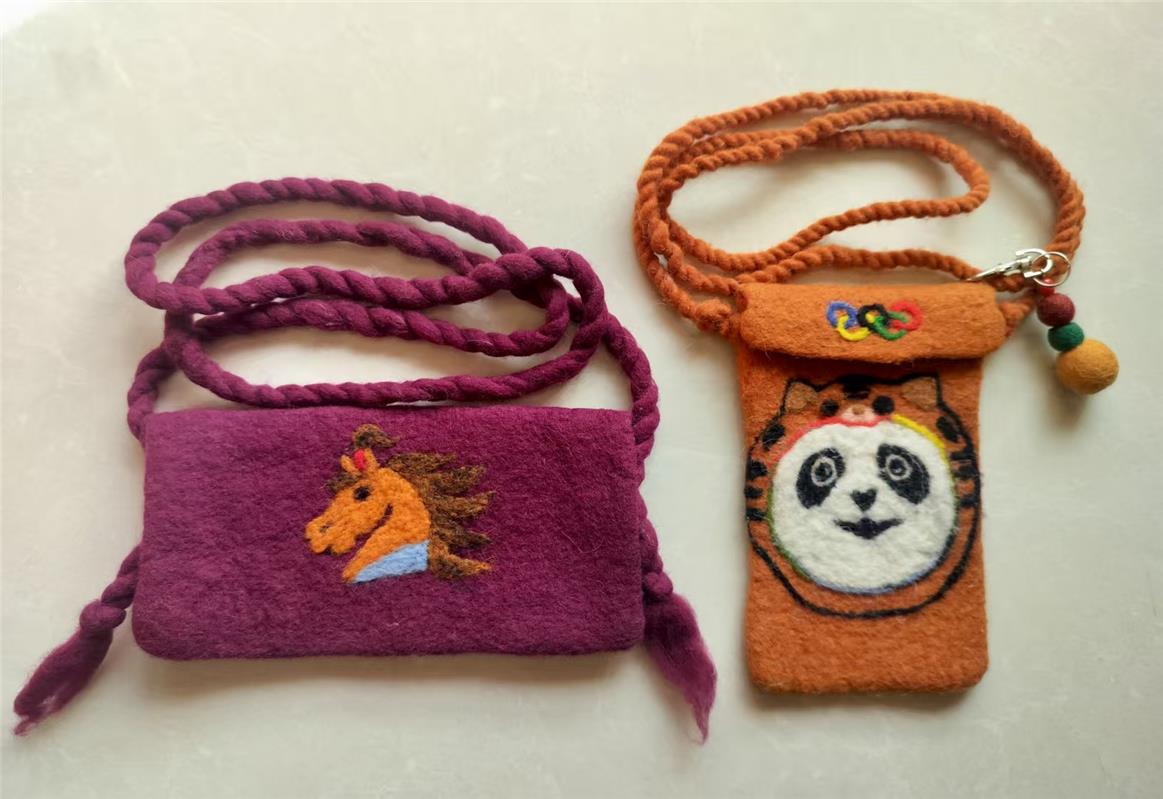 這套擺件采用的蒙古族氈繡技藝是國(guó)家級(jí)非物質(zhì)文化遺產(chǎn),多以駝絨、羊毛、馬鬃為原料,以縫制、壓邊等手法繡于毛氈之上,成品兼具實(shí)用性與藝術(shù)性。近年來(lái),該技藝衍生出冰箱貼、擺件、杯墊、背包等精致便攜的文創(chuàng)產(chǎn)品,讓古老技藝在新時(shí)代煥發(fā)勃勃生機(jī)。