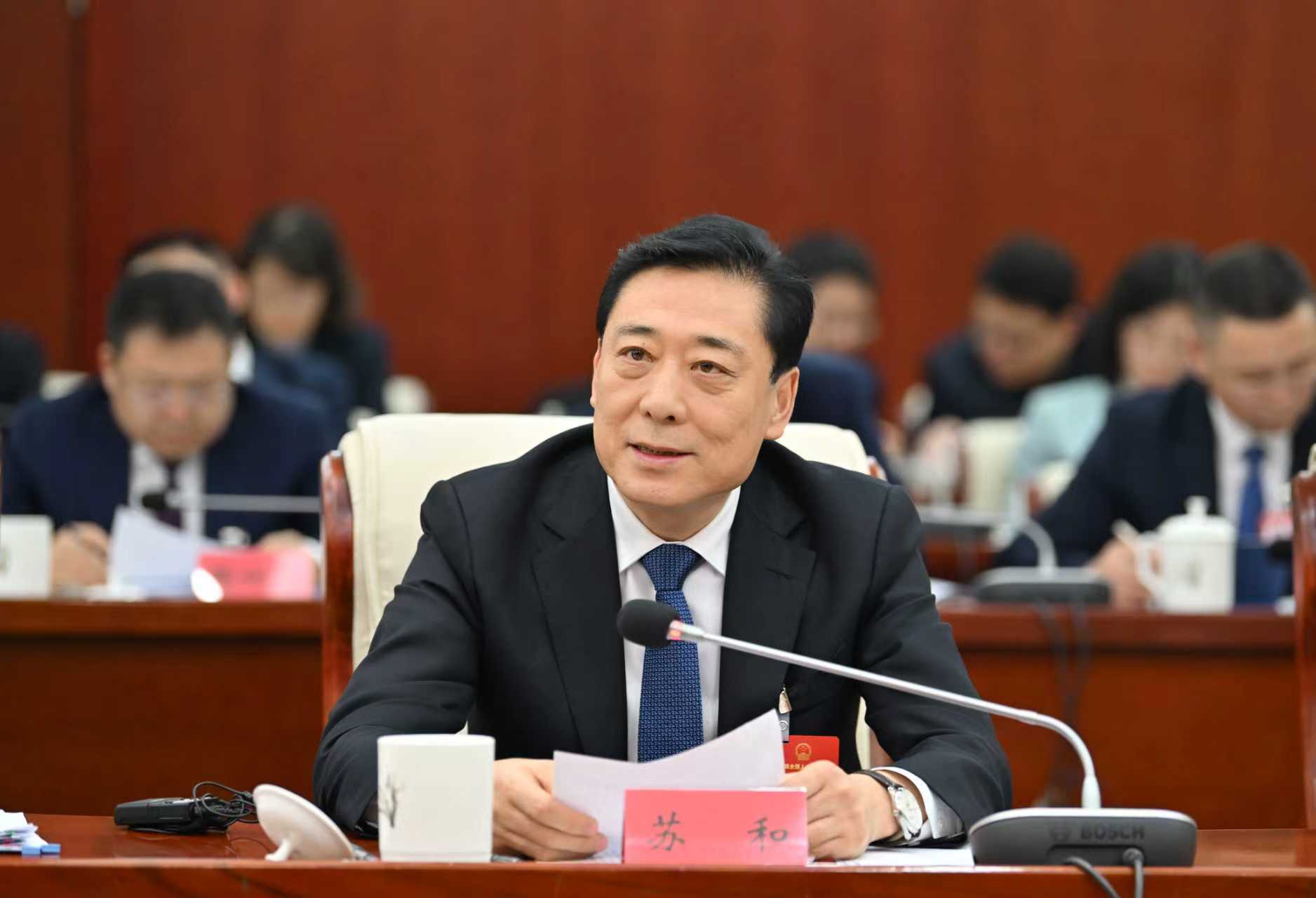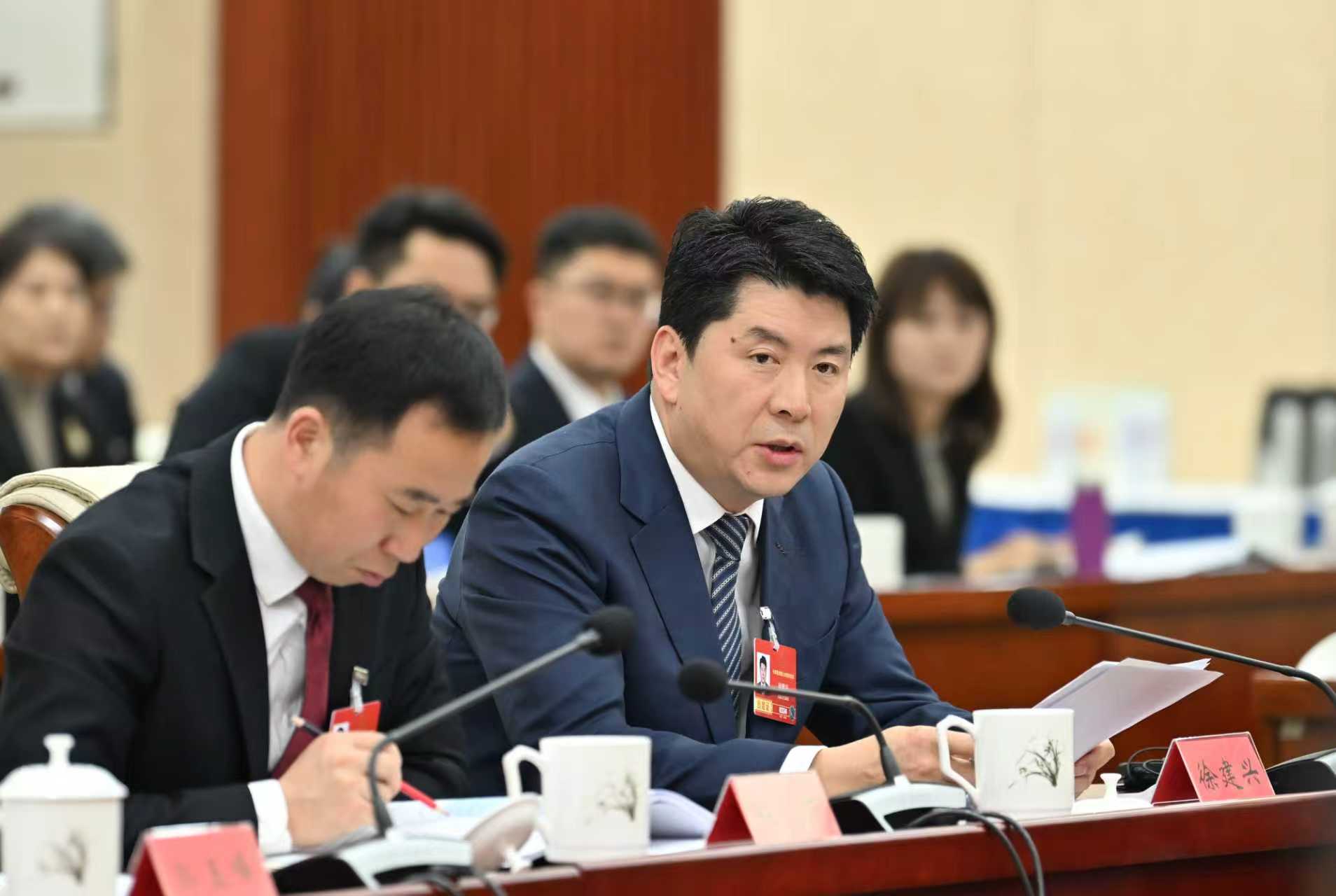 3月5日,全國(guó)人大代表蘇和就推進(jìn)興安盟“兩區(qū)一窗口”試點(diǎn)建設(shè)提出建議。草原云記者 馬建兵 攝
