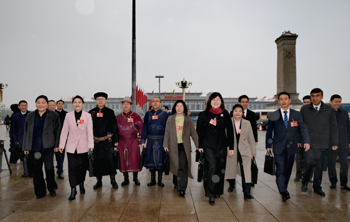 3月5日上午,十四屆全國(guó)人大四次會(huì)議在京開(kāi)幕,內(nèi)蒙古代表團(tuán)代表精神抖擻、滿懷信心地走向會(huì)場(chǎng)。草原云記者 馬建兵 攝