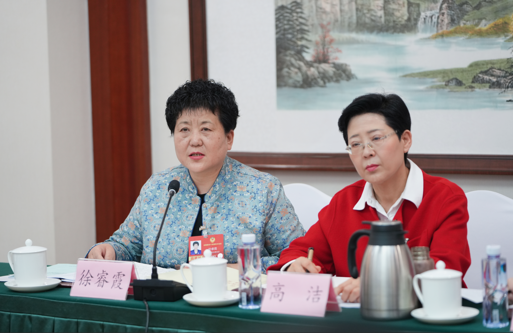 3月5日,住內(nèi)蒙古全國(guó)政協(xié)委員徐睿霞(左)建議,設(shè)立烏梁素海生態(tài)保護(hù)與系統(tǒng)治理專項(xiàng)基金,開(kāi)展跨學(xué)科聯(lián)合攻關(guān),重點(diǎn)研發(fā)低成本、生態(tài)友好的底泥污染治理與資源化利用技術(shù)。草原云記者