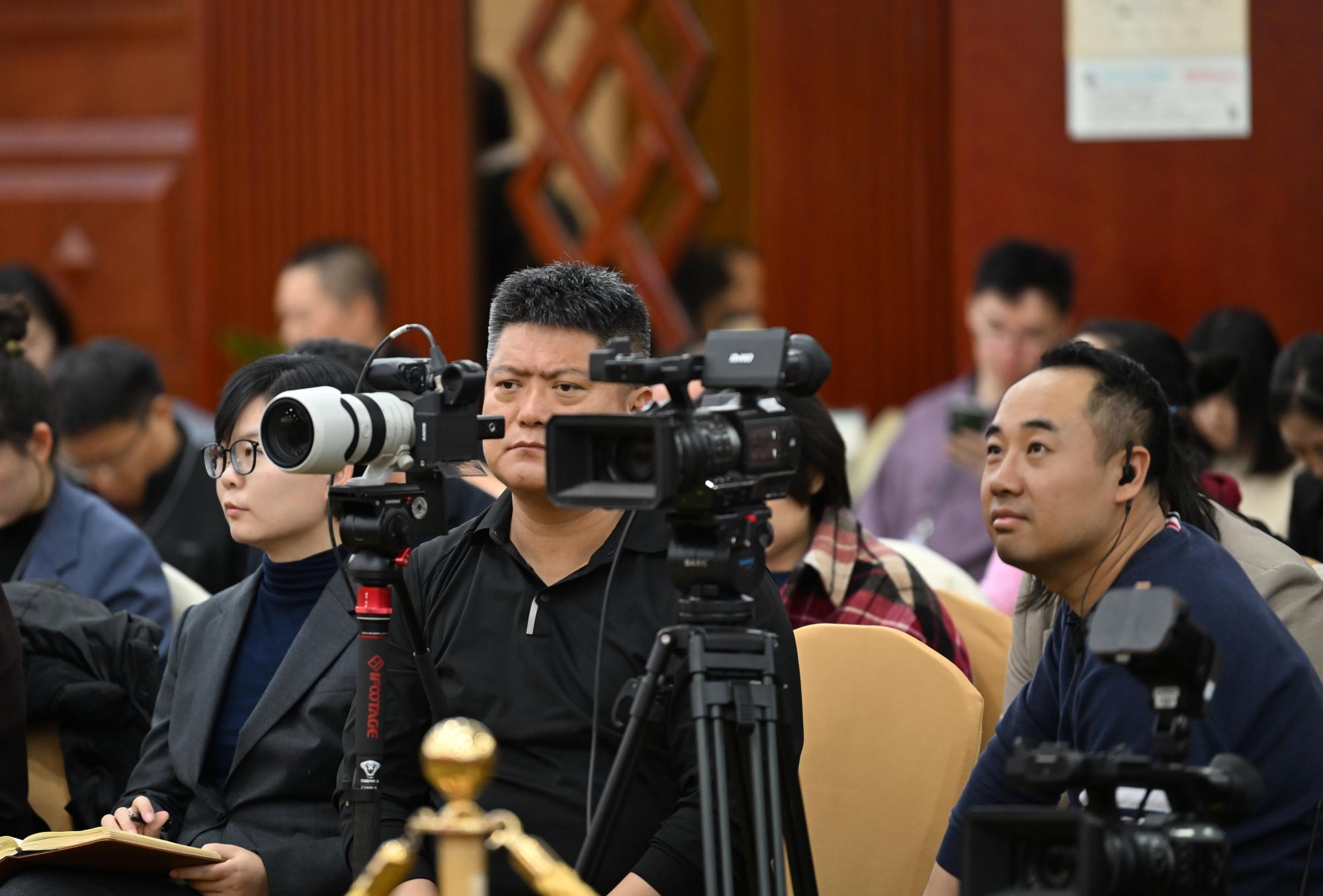 內蒙古代表團開放團組活動現(xiàn)場,記者們架起“長槍短炮”,現(xiàn)場快門聲此起彼伏。草原云記者 馬建兵 攝