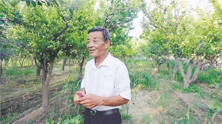 張三明查看林果長(zhǎng)勢(shì)。(圖片由受訪者提供)