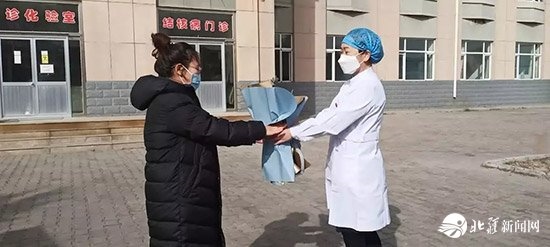 下午3點,患者王某走出隔離病房,醫(yī)務人員將鮮花送到她手中,并和她合影留念,她的精神狀態(tài)看上去不錯。
